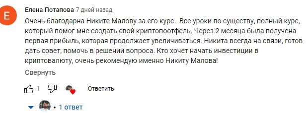 После изучения отзывов, можно сделать вывод, что Александр Дырза и Никита Малов не особо качественно учат торговать и зарабатывать на крипте, не демонстрируют актуальные приемы и методы получения прибыли. Положительные отзывы от довольных клиентов удалось найти только на сайте проекта.