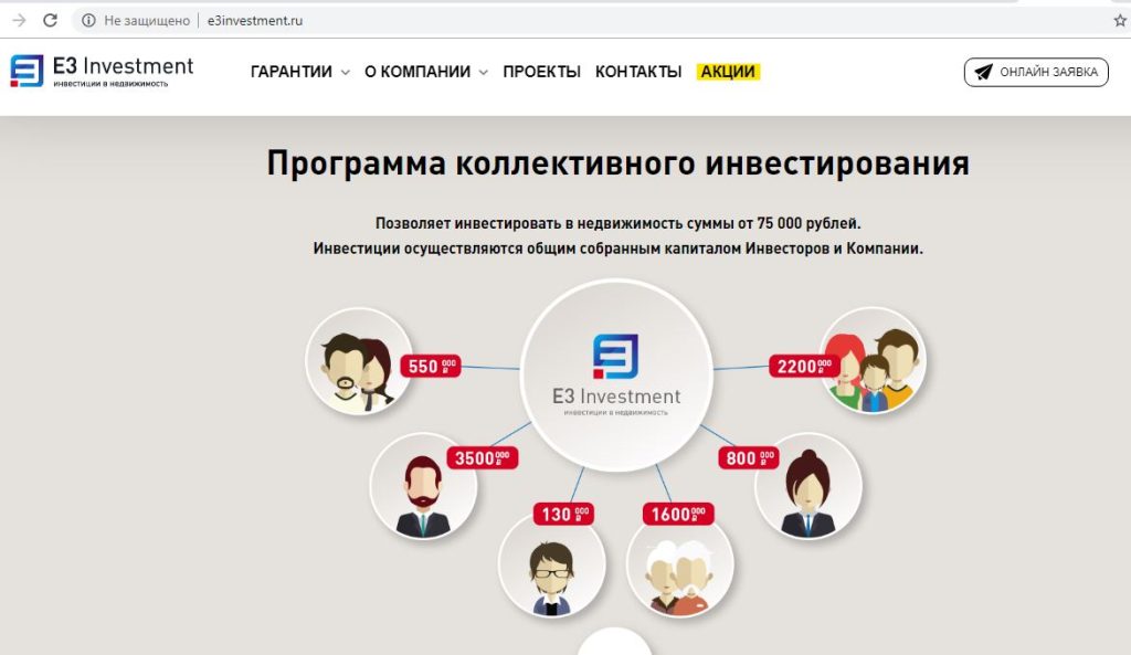 Е3 Инвестмент является частью холдинга, который занимается инвестированием в строительство недвижимости. В интернете вкладчикам предлагается стабильно высокий доход. На основе изученной информации о деятельности компании наша редакция сделала ряд выводов, которыми делится в рамках нового обзора.