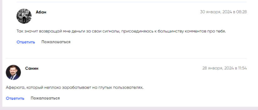 Отрицательные комментарии об админе Crypto Cat можно увидеть на сторонних ресурсах в интернете. Здесь автора проекта называют аферистом и не рекомендуют использовать для получения прибыли его сигналы. Слишком велики риски утраты всех личных средств.