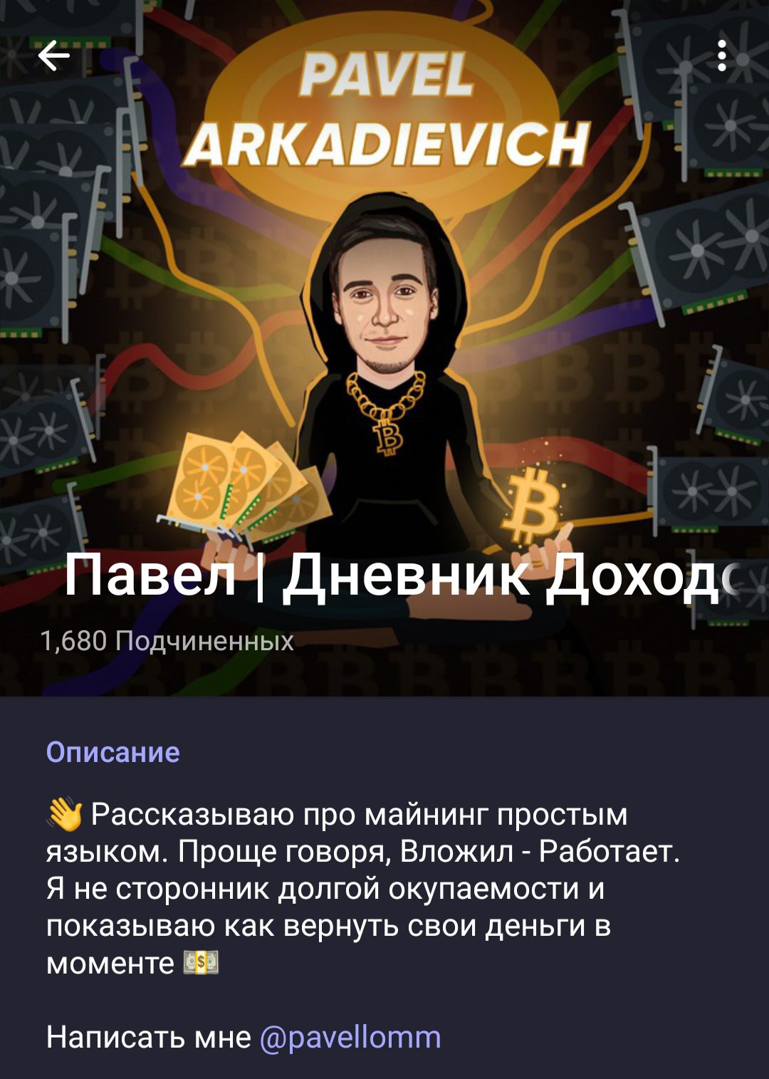 Павел | Дневник Доходов – Телеграм-канал, в котором владелец рассказывает простым языком о майнинге. Парень гарантирует, что любой сможет пассивно зарабатывать, по схеме: вложил-работает. Но настолько полезная деятельность аналитика или мы наткнулись на человека, который просто громко говорит, но ничего не делает – узнаете в этой статье.
