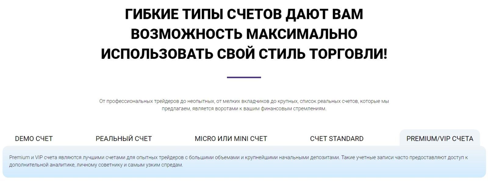 - Счета Премиум и ВИП рекомендуется использовать опытным трейдерам, которые совершают крупные операции.