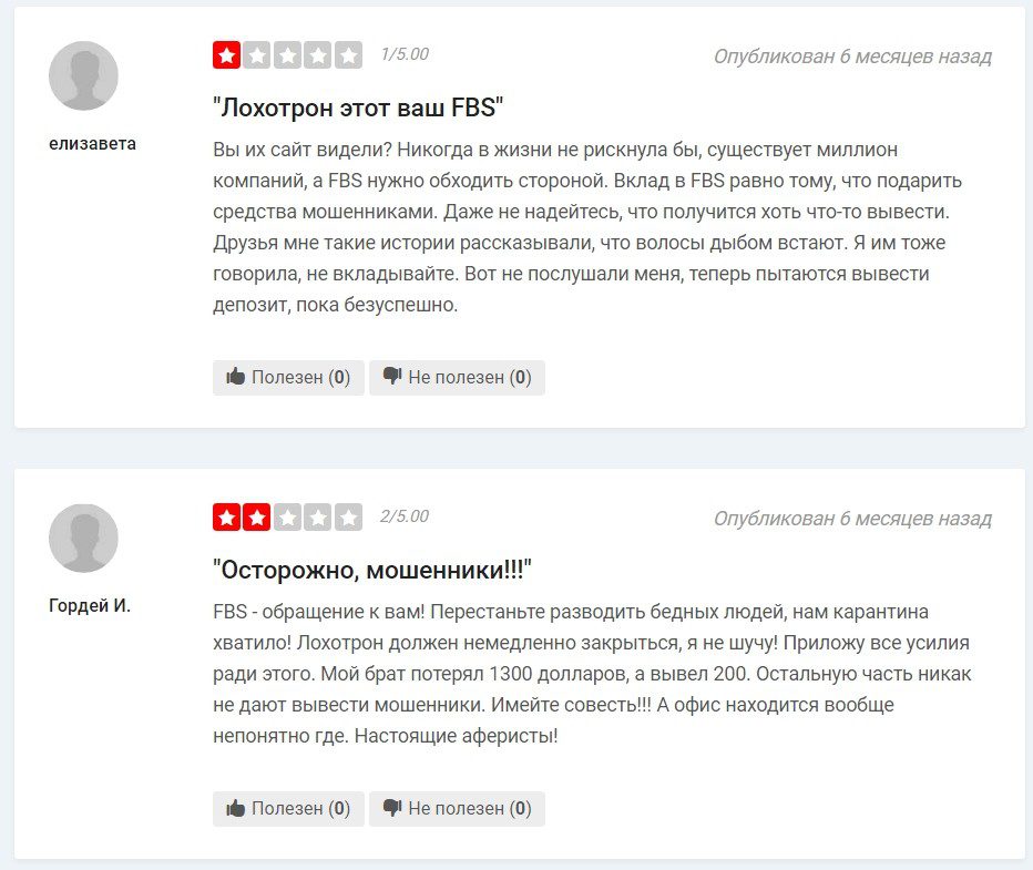 Большинство отзывов о FBS негативные. Инвесторы пишут о том, что вкладывают большие суммы, а выводят гораздо меньше. Некоторым инвесторам и вовсе не удавалось вернуть свои деньги, и в итоге люди терпели большие финансовые потери.